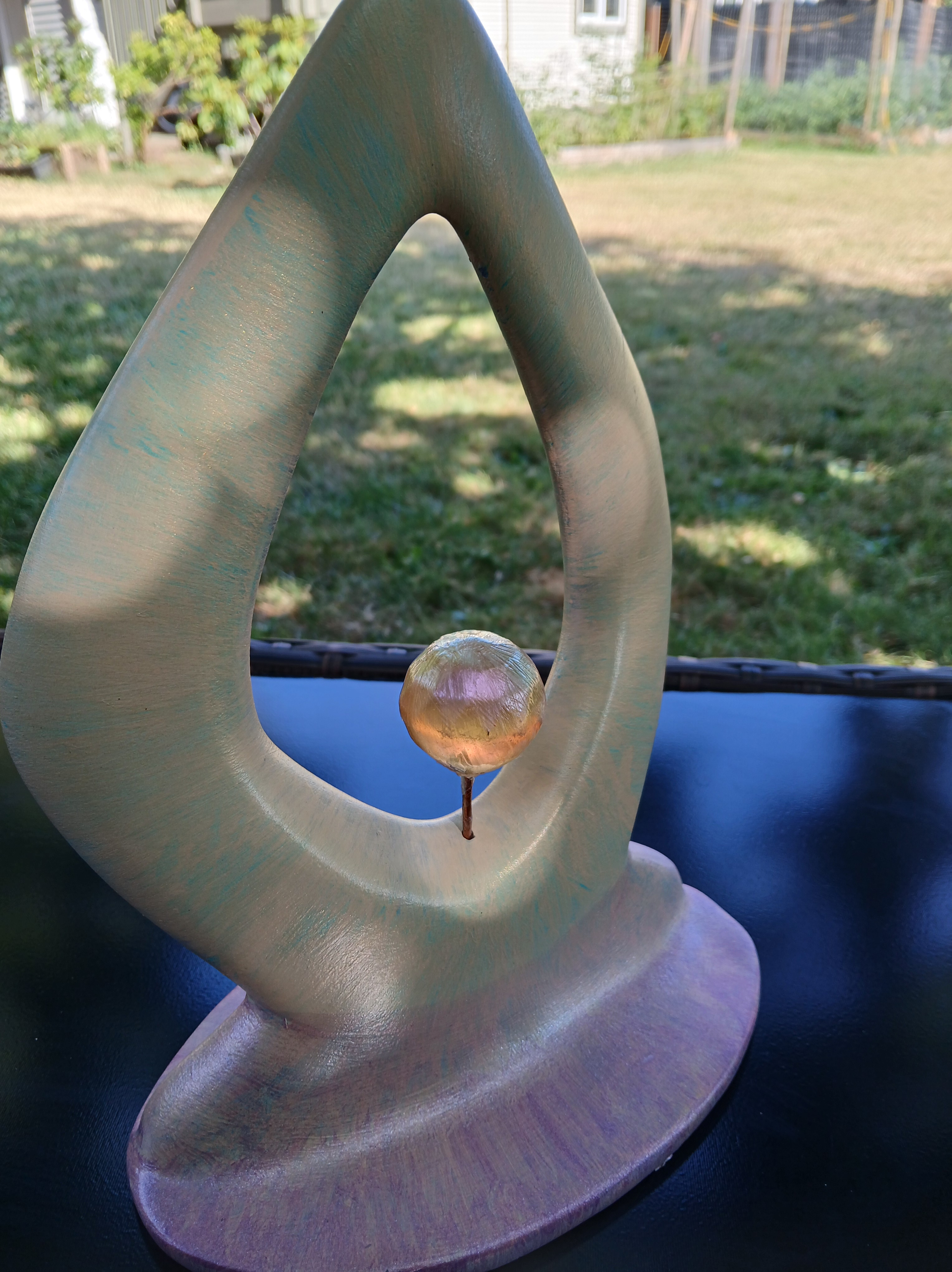 The first reach sculpture was tentatively called, Prayer. But i soon moved from arms to more like wings. The secret sauce of the reach sculptures is the relationship between the wings and the center piece. About a foot tall.